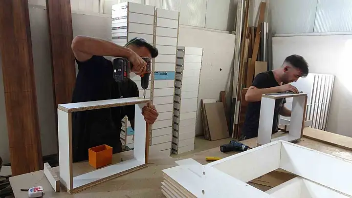 Yeşilyurt 2. Organize Sanayi Bölgesi'nde mobilya üretimi yapan Hasan Boyraz, deprem sonrası artan inşaat ve tadilat talepleriyle iş yüklerinin katlandığını aldıkları siparişleri yetiştirmekte zorlandıklarını belirtti. vBoyraz, sadece Malatya değil, Adana, Kahramanmaraş ve Hatay gibi diğer deprem bölgelerinden de yoğun sipariş aldıklarını, buna karşın usta bulamadıkları için siparişlere yetişmekten güçlük çektiklerini söyledi.