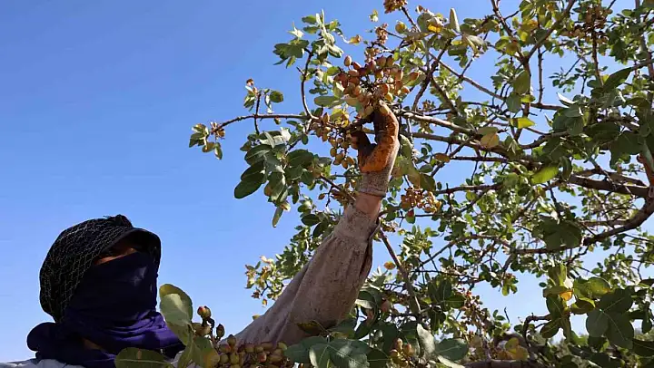 Diyarbakır'ın Çınar ilçesinin geniş arazilerinde dikilen 'Yeşil altın' olarak nitelendirilen fıstıkta hasat başladı.