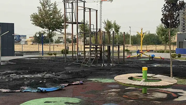 Diyarbakır'ın merkez Yenişehir ilçesinde bulunan çocuk parkı, alevlere teslim olarak kullanılmaz hale geldi.