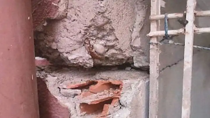 'Dış cephede kolon şeklinde estetik amaçlı tuğla duvardan diş yapılmış olup, zemin dolgusundaki oturma neticesinde, zemin kat kuzey doğu cephesindeki dış cephe tuğla duvarında inşa edilen dişlerin kirişle birleşim bölgesinde çatlamalar-ayrışmalar meydana gelmiştir. Bu dişler kolon şeklinde inşa edildiğinden vatandaşlarca kolon patlaması olarak değerlendirilmiştir. Yapının taşıyıcı sisteminde çatlak ve kırığa rastlanmamıştır. Yapının zemin kat dış duvarında çatlamaların daha önce de olduğu, sıva ile onarıldığı gözlenmiştir.'