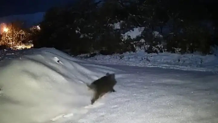 Elazığ'da kar yağışı sonrası doğada yiyecek bulmakta güçlük çeken domuzlar, Sivrice ilçesi Kürk köyüne indi. Köyün içerisinde bulunan güvenlik kamerasına yansıyan domuz sürüsü bir süre sonra ormanlık alana kaçarak uzaklaştı. O anlar güvenlik kamerası tarafından saniye saniye kaydedildi.