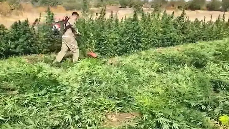 Diyarbakır'da 70 ton toz esrar elde edebilecek 3 milyon 476 bin adet kök kenevir ve skunk ele geçirildi: 7 gözaltı