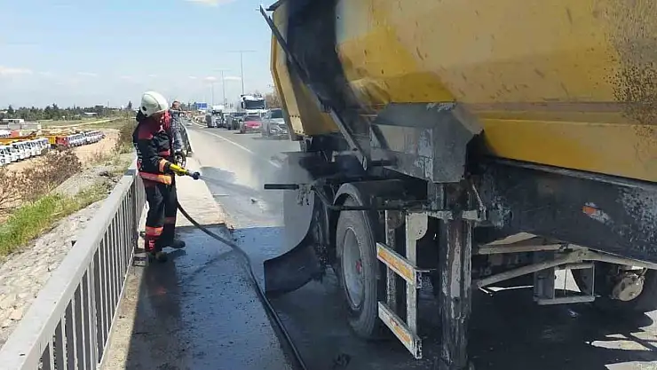 Hafriyat kamyonunun lastiğinde çıkan yangın korkuttu