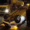 Refüje çarparak ters dönen araçtan burnu kanamadan çıktı