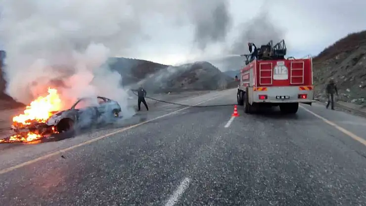 Tunceli'nin Pülümür ilçesinde seyir halindeyken alev alan araç kullanılamaz hale geldi.