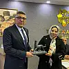 Genel kurulda konuşma yapan Prof. Dr. Yavuz Haykır’ın konuşmasının ardından, ressam ve heykeltıraş Şeymanur Doğan tarafından kendisine bozkurt figürlü bir hediye takdim edildi.
