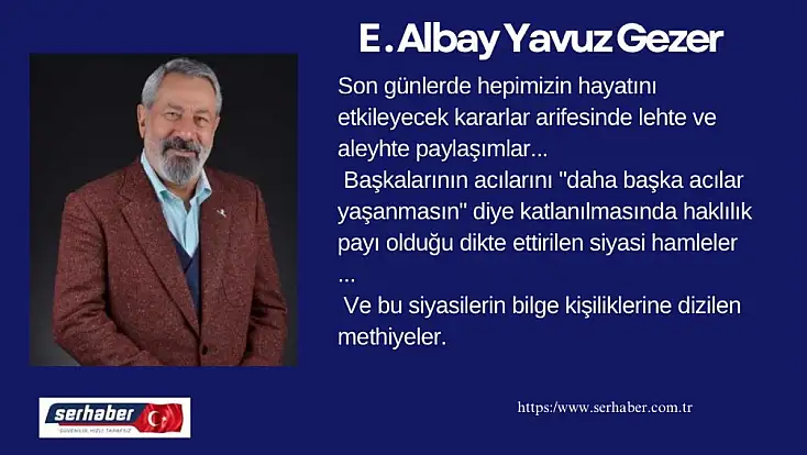 Başkalarının acılarını "daha başka acılar yaşanmasın" diye katlanılmasında haklılık payı olduğu dikte ettirilen siyasi hamleler ...