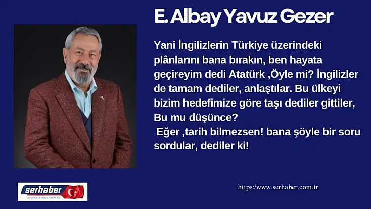 " Yani İngilizlerin Türkiye üzerindeki plânlarını bana bırakın, ben hayata geçireyim dedi Atatürk ,Öyle mi? İngilizler de tamam dediler, anlaştılar. Bu ülkeyi bizim hedefimize göre taşı dediler gittiler, Bu mu düşünce?